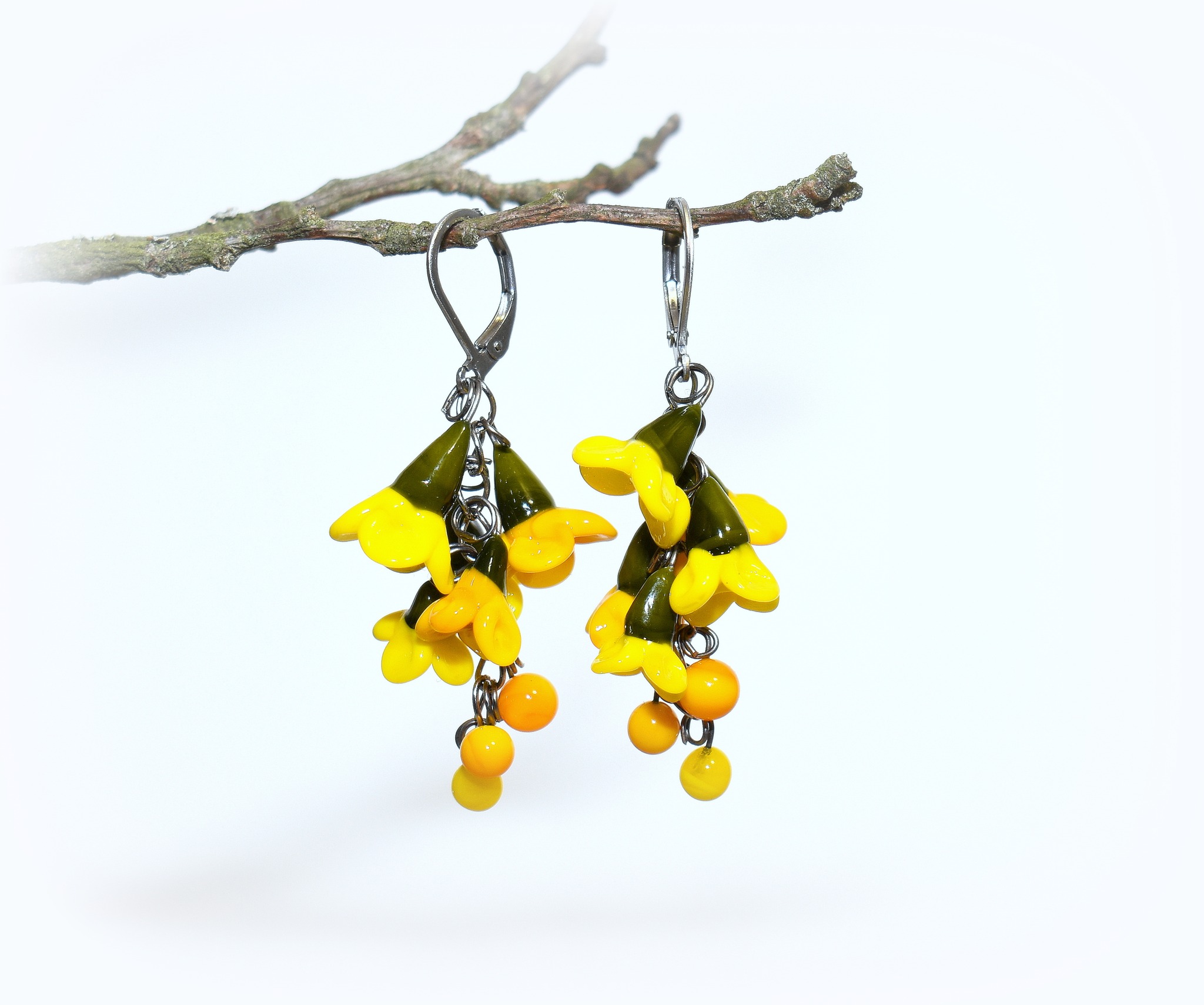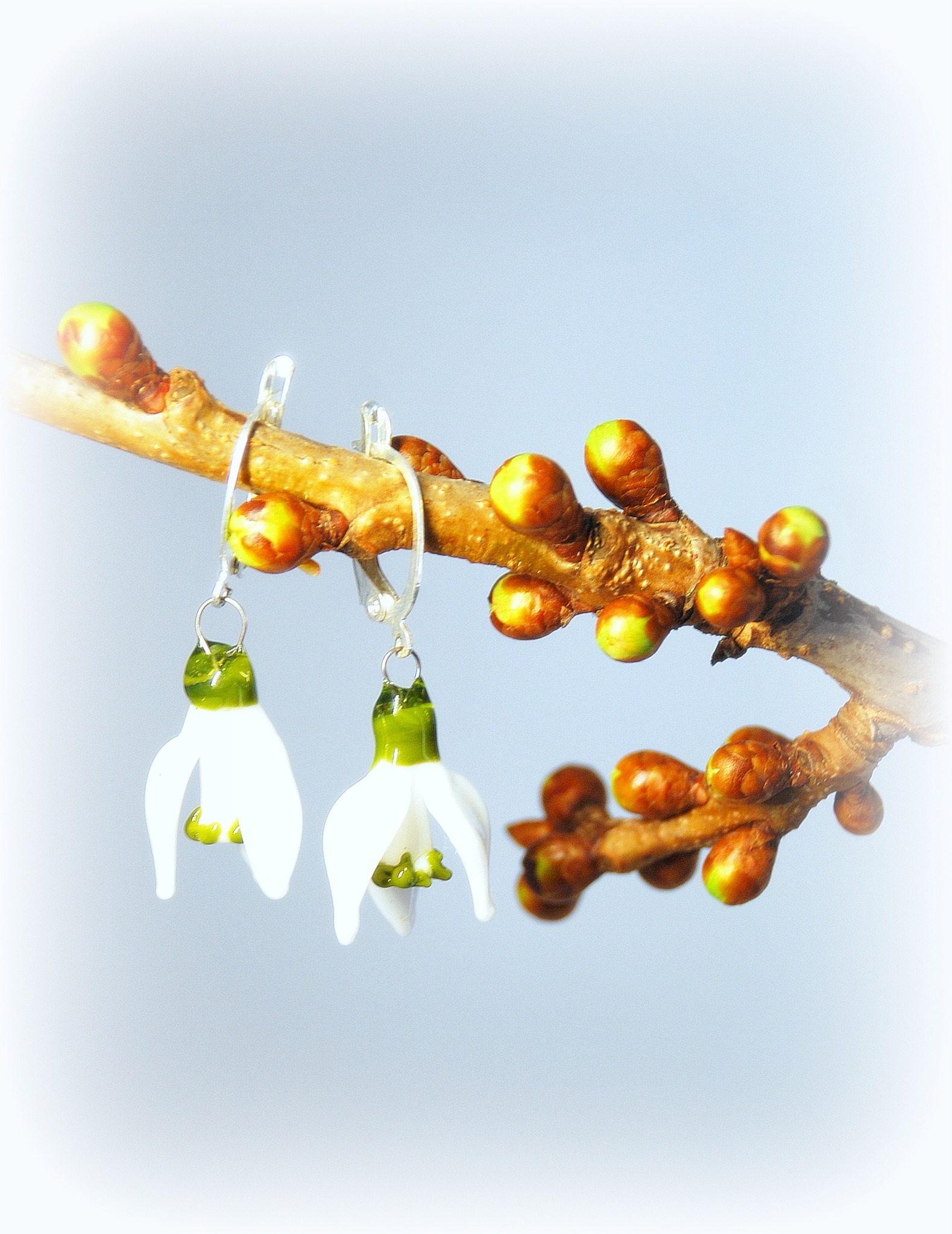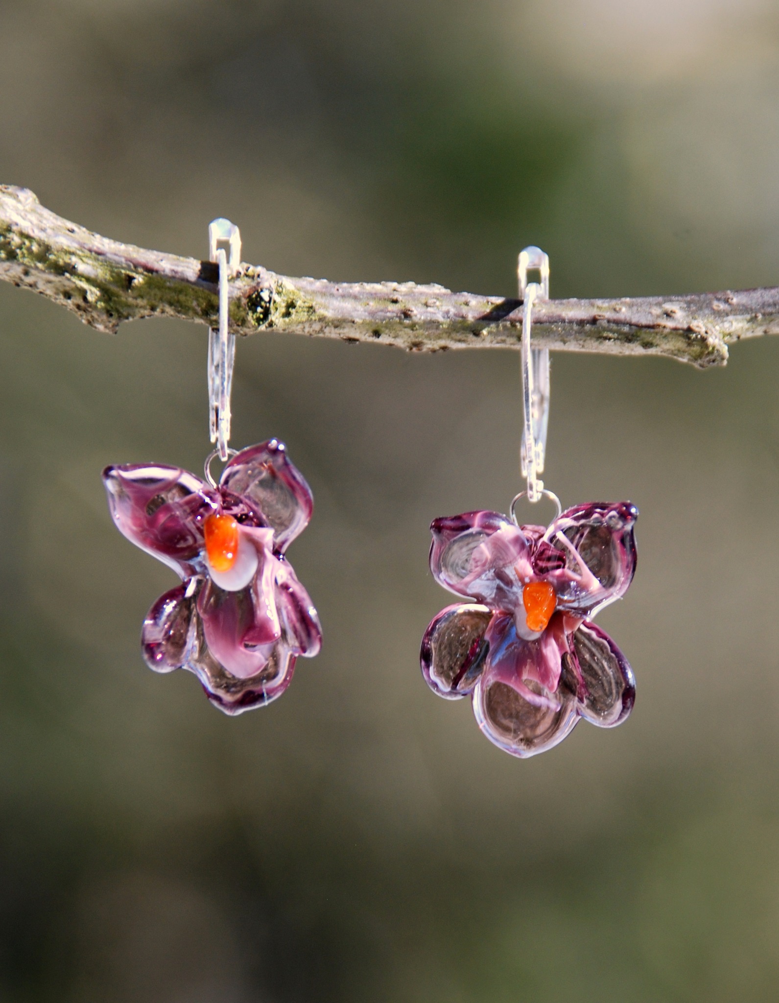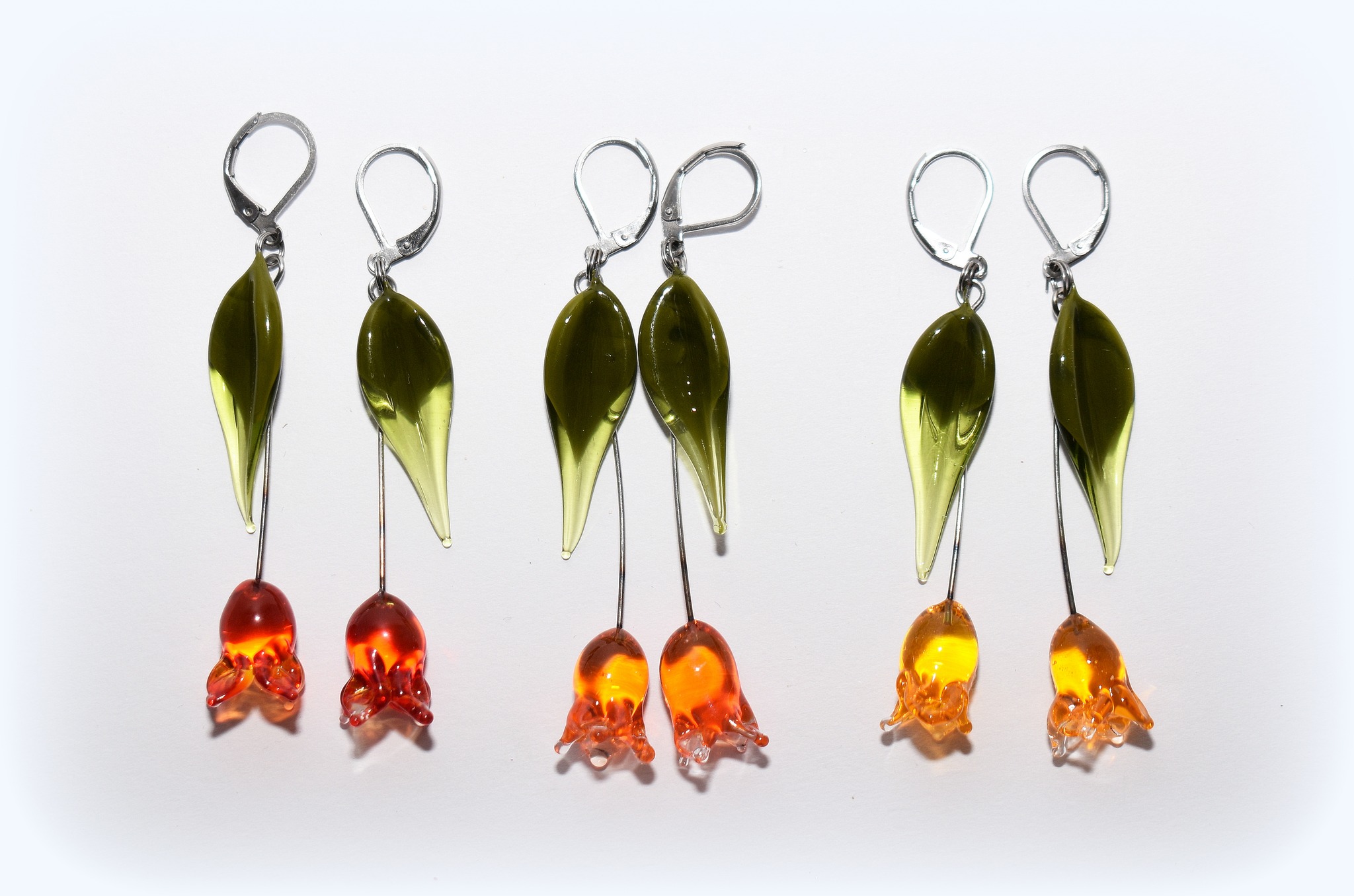 Ručně vyráběné náušnice vznikají tradiční technikou u sklářského kahanu. Každý kousek je originál — od prvního nádechu plamene až po finální detail je vše tvořeno ručně s maximální péčí a důrazem na jedinečnost. Elegantní květinový motiv podtrhuje ženskost a originalitu každé nositelky.